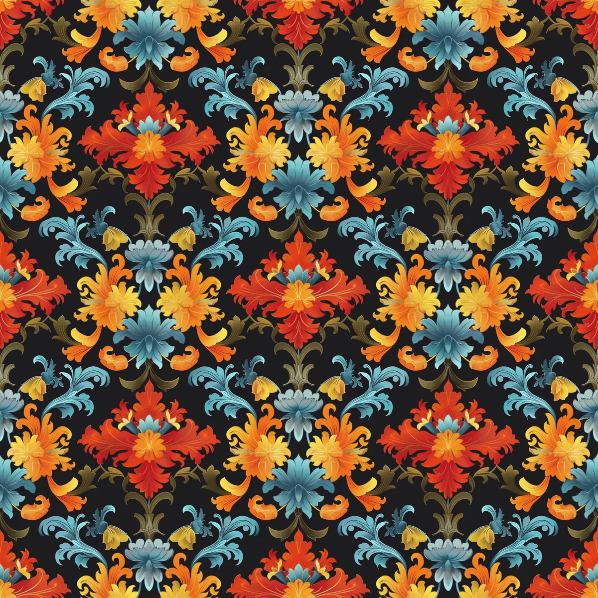 Colorful floral baroque, seamless pattern, 3600 x 3600 pixels