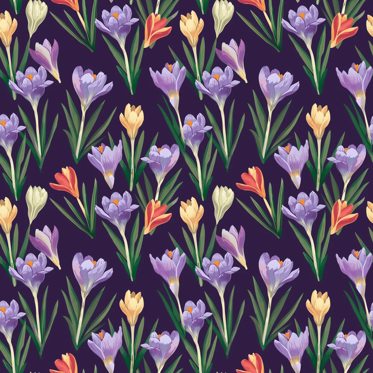 Crocus Field, seamless pattern, 3600 x 3600 pixels