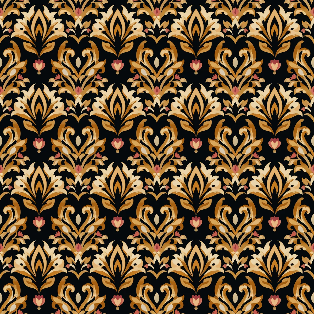 Folklore Damask, seamless pattern, 3600 x 3600 pixels