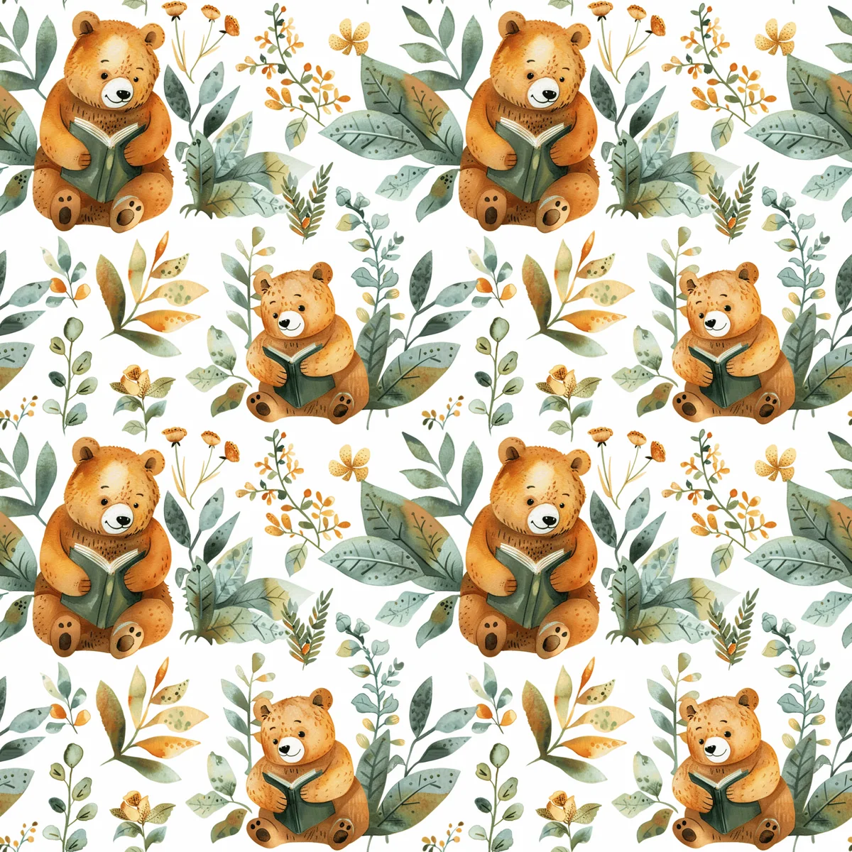 Joyful Mr.Bear, seamless pattern, 3600 x 3600 pixels